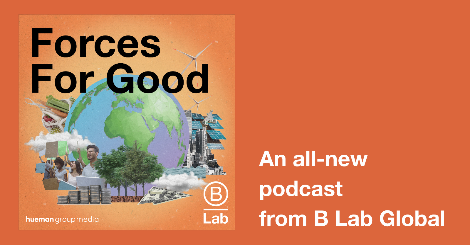 NEW YORK, OCTOBER 5, 2022 — In partnership with Hueman Group Media, B Lab Global, the nonprofit network powering the B Corp movement, is proud to announce the launch of FORCES FOR GOOD. This new podcast will take a hard look at how businesses are helping solve the biggest social and environmental challenges of our time, and offer strategies for transformation and resilience through conversations with industry experts and change-makers from within the B Corp movement and beyond.